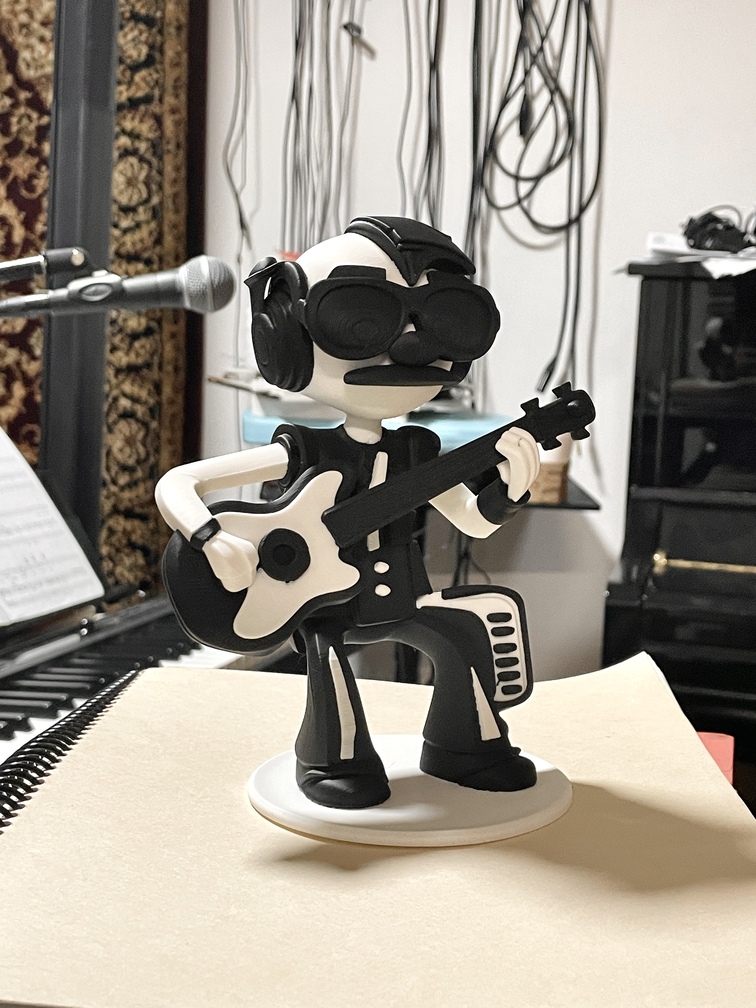 With its permanent cool-guy shades and a tiny guitar clutched just right, this little fellow brings a rock 'n' roll attitude wherever it goes, proving that even bones can swing. He's perfect for adding a bit of delightful, low-maintenance decoration to your creative space or as a witty gift for the guitarist who has everything but a skeleton bandmate.