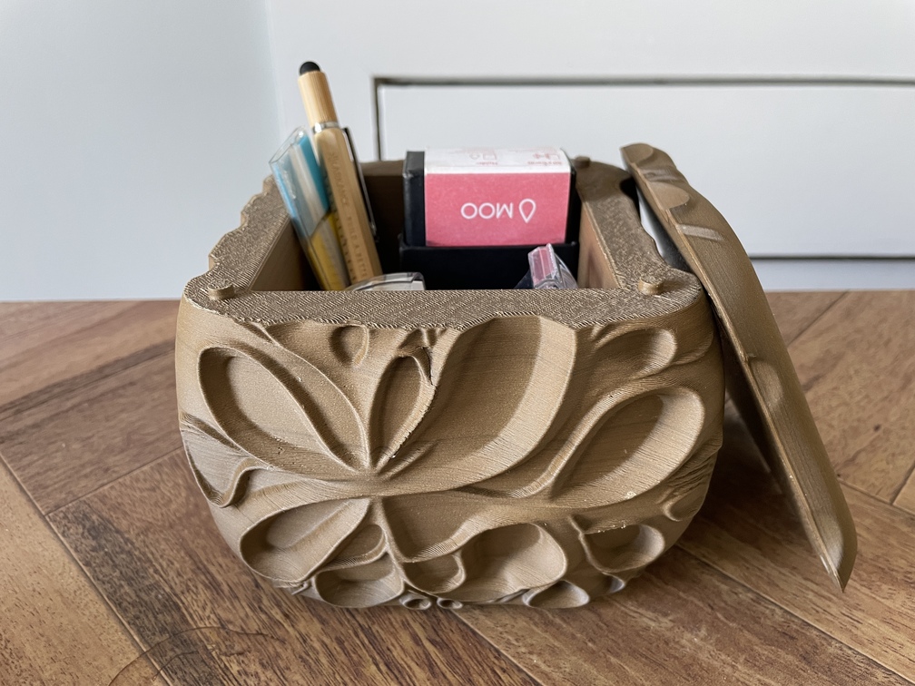 Toss in your pens, lip balms, and all those tiny "must-have" items that usually clutter your desk, giving them a delightful new home. With its secure lid, it keeps your space tidy and your essentials tucked away, like a little, helpful secret keeper. It's the delightful little companion your workspace needs to hold its own and keep things wonderfully organized.