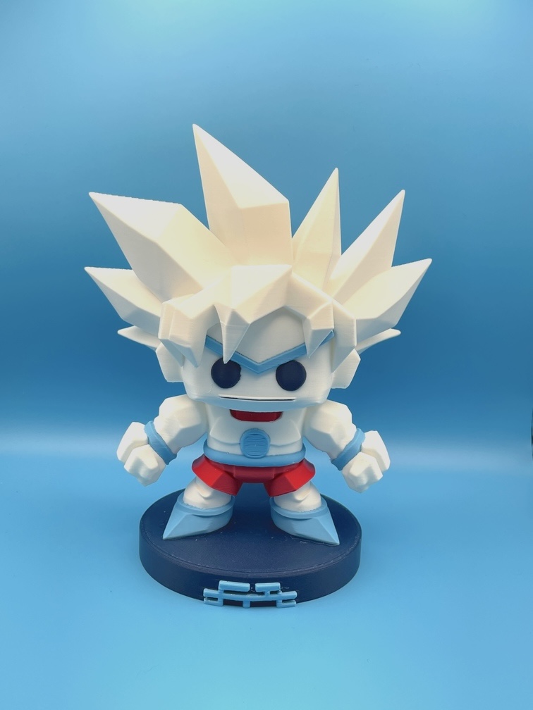 This bold, spiky-haired hero figurine stands ready to defend your personal space, adding a fun, energetic vibe to any collection. Simply place this little champion wherever you need a spot of super-powered decorative energy or a cool mascot to watch over your daily tasks.