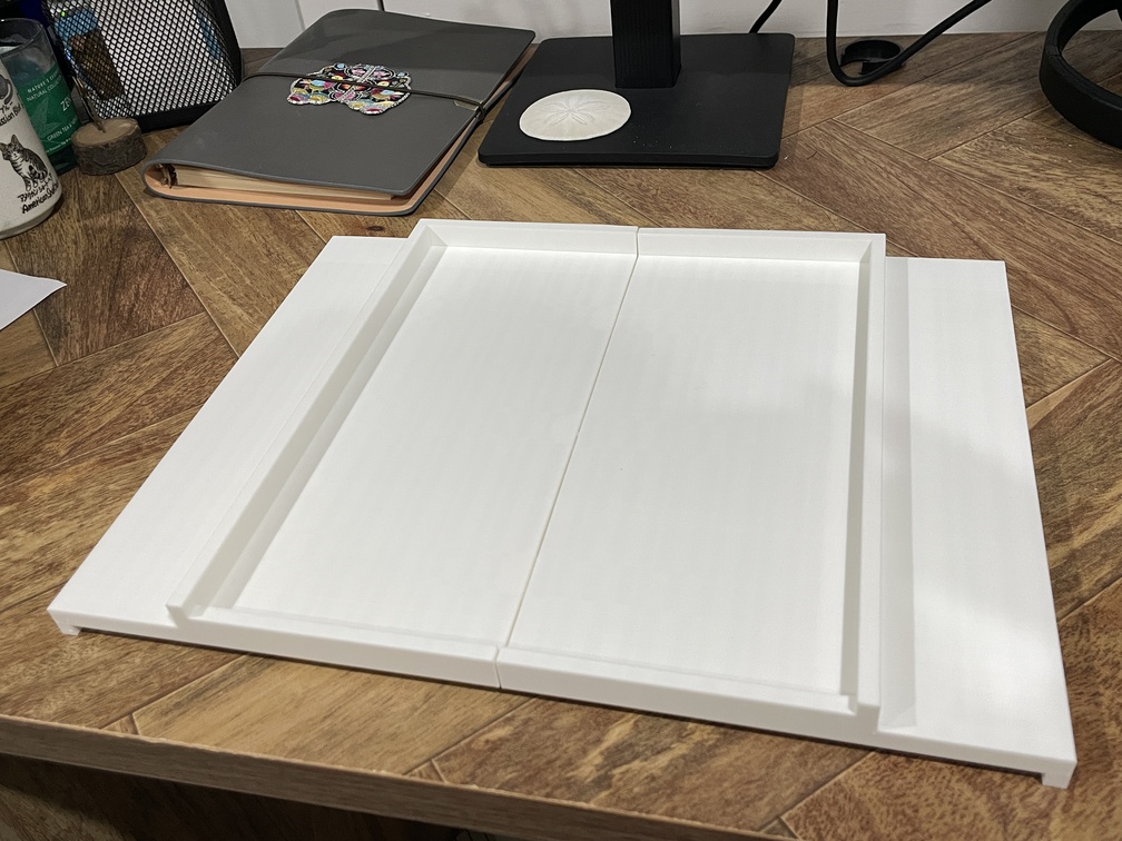 Working from home, the owner has to carry his laptop and audio interface from one space to another between activities. The short, narrow hall way connecting the dining room and the work room has a few steps. The owner finds it inconvenient to carry stuff with bare hands to cross the hallway.